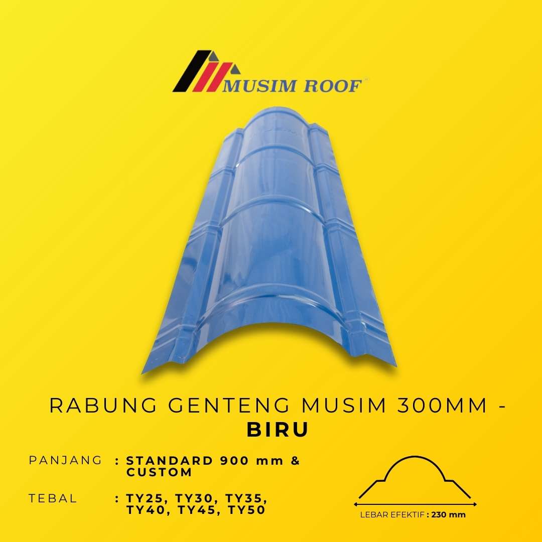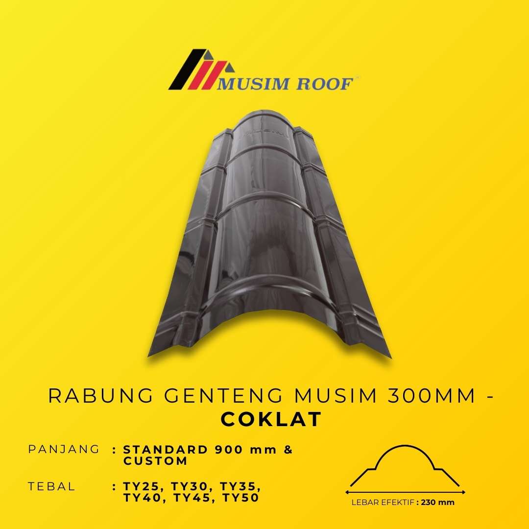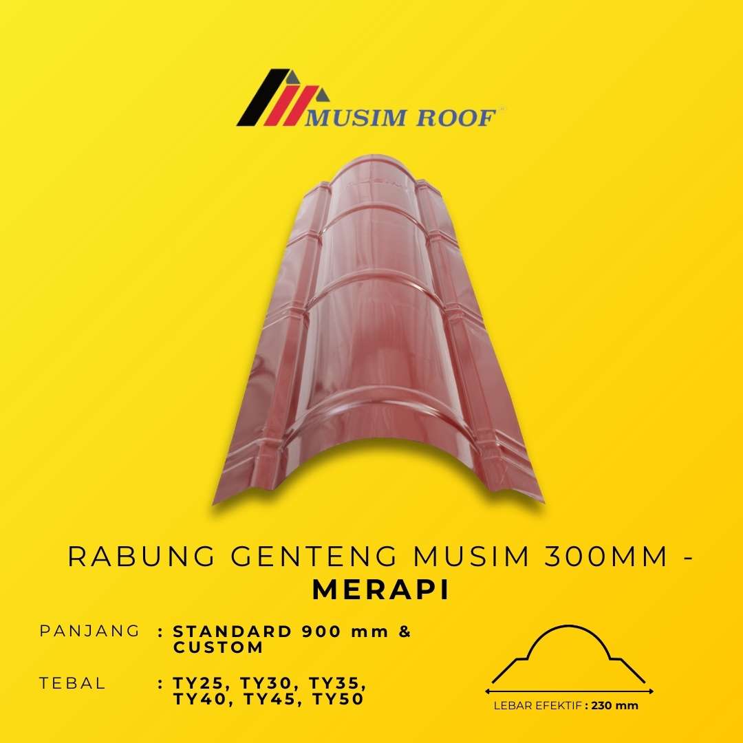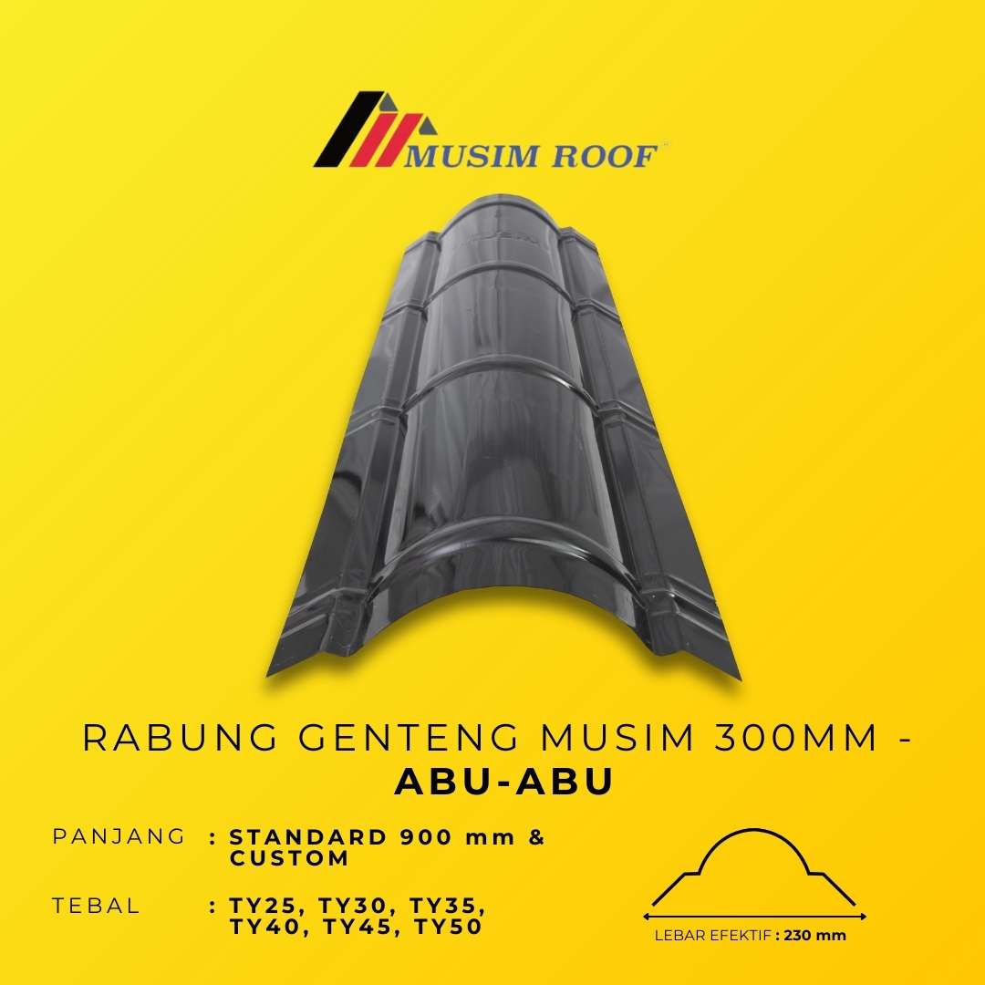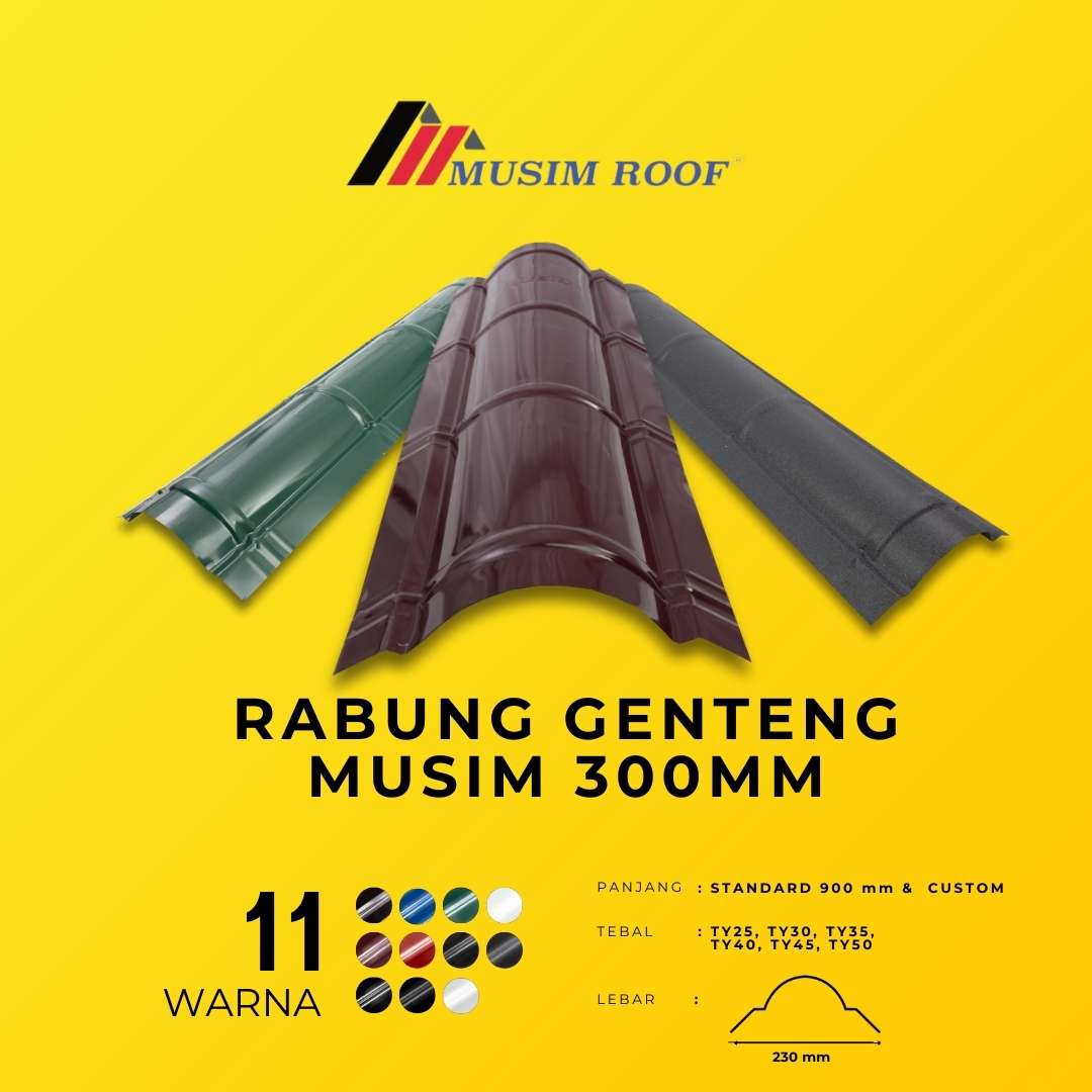 RABUNG GENTENG MUSIM 300MM dirancang sebagai solusi finishing atap yang memberikan perlindungan maksimal pada area puncak. Dengan desain presisi dan lebar 300mm, RABUNG GENTENG MUSIM 300MM membantu mencegah rembesan air sekaligus menjaga kekuatan dan kerapian struktur atap. Diproduksi dari material berkualitas tinggi, RABUNG GENTENG MUSIM 300MM tahan terhadap cuaca ekstrem dan memastikan performa jangka panjang. Tersedia dalam berbagai pilihan warna, produk ini menghadirkan tampilan atap yang lebih rapi, harmonis, dan berkelas.